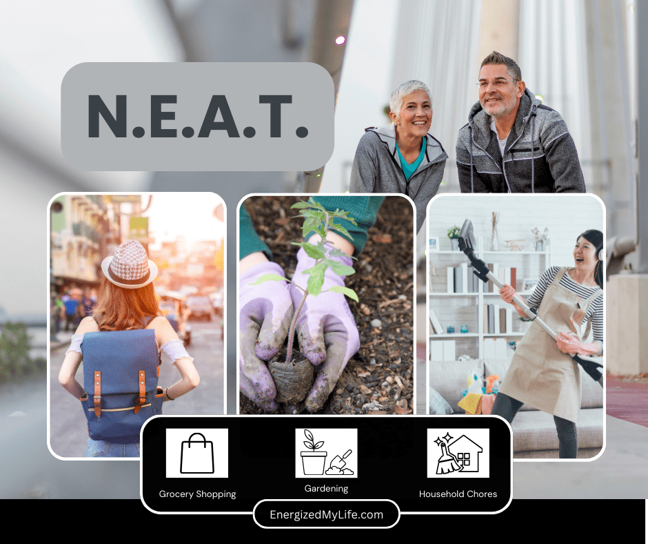 NEAT (Non-Exercise Activity Thermogenesis) refers to the energy expended through daily activities that are not planned exercise or sports. NEAT can be a critical component in how we maintain our body weight and/or manage obesity or lose weight. It’s the total calories that a person burns through their daily activity excluding purposeful physical exercise.